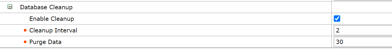 - By default cleanup is enabled, runs for every 2 days and keeps last 30 days worth of data (see settings above)
