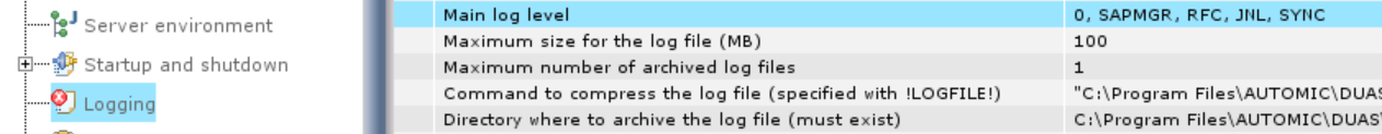 Node Settings > Logging > Main log level: 0,SAPMGR,RFC,JNL,SYNC