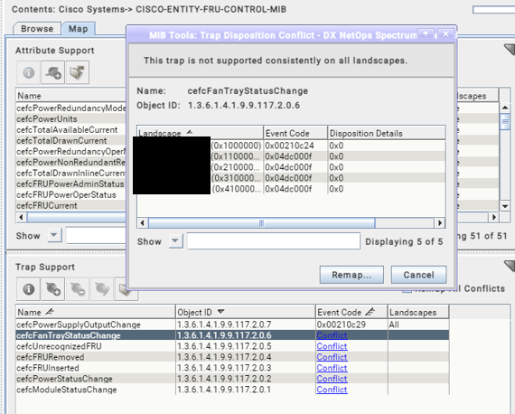 In the above example, notice the event code for the cefcFanTrayStatusChange trap is 0x00210c29 for the 0x1000000 landscape but it is 0x04dc000f for all other landscapes.