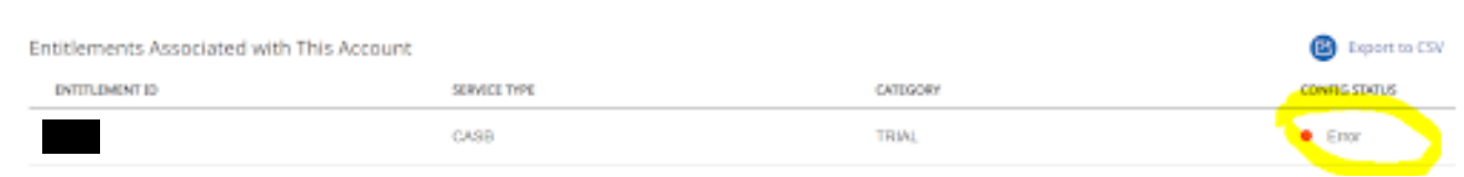 CASB service shows ERROR state in CMP portal after initial configuration.