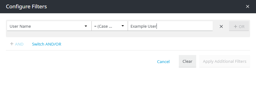 When trying to edit an existing dashboard and add a filter for a user the search option does not bring the user name up as an option to add to the filter.
