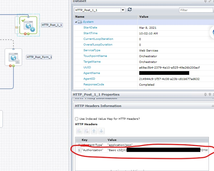 Add the "Authorization" key in the HTTP Headers Information and set the value in base64 format