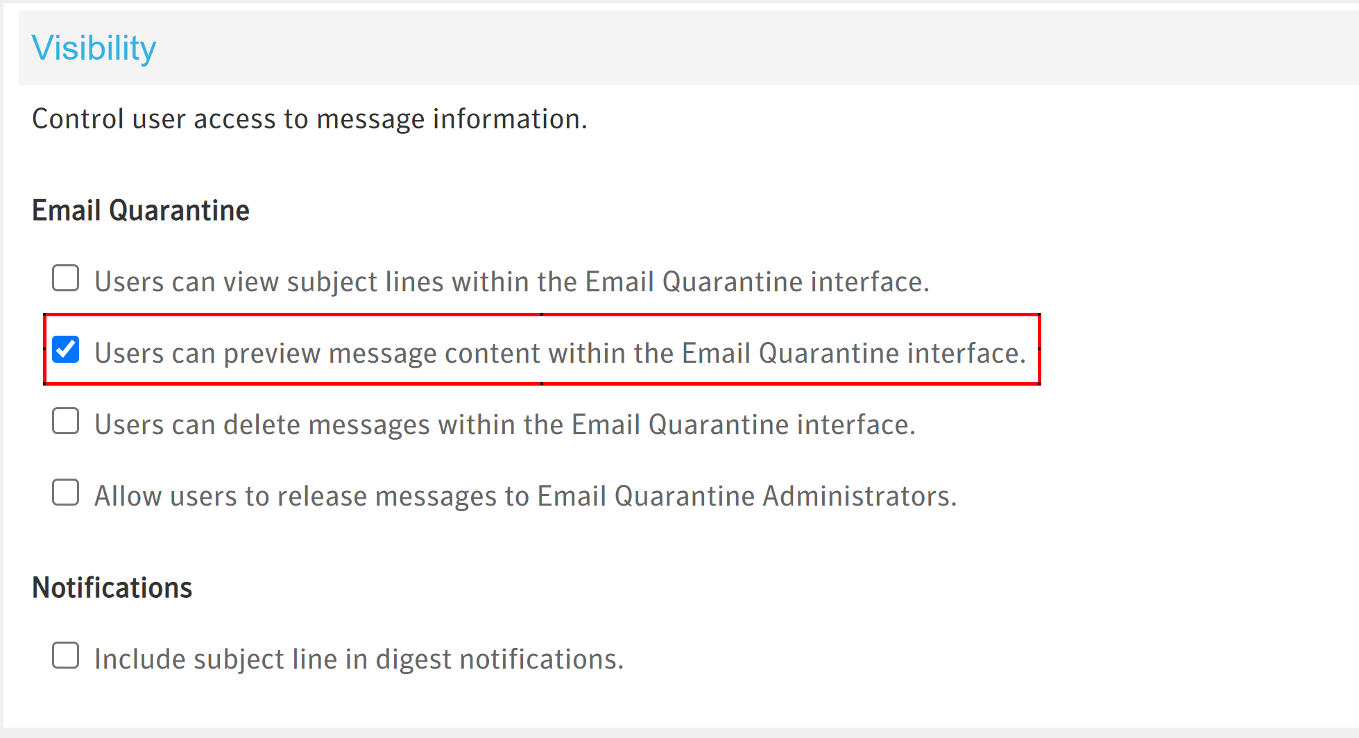 You cannot preview quarantined emails and encounter the error message "Unable to view preview"