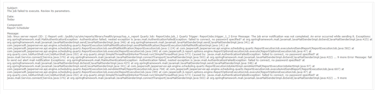 Note:In use case authentication is required for CABI server and username /password is specified in js.quartz.properties need to use the keyword true for key "mail.smtp.auth"