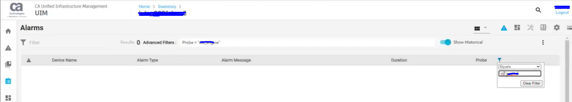 2.Go to blue filter option icon located on the right and delete the existing alarm filter name.