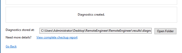 Click Run Diagnostics. It will take a few moments to run and collect the requested information. The scripts will attempt to collect all files from both, so some errors are expected.