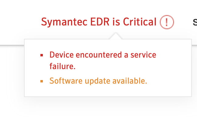 After a deployment of Symantec Endpoint Detection and Response (SEDR), the appliance may show an error status regarding a service failure.