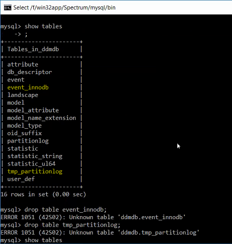 Even though we got Unknown table, those tables disappeared when we rerun "show tables;"