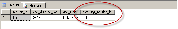 SELECT session_id, wait_duration_ms, wait_type, blocking_session_id