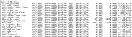 The pdm_vdbinfo report also includes a Delayed ID Queue section, which identifies the "select short" cache usage. A select short query is one that has the WHERE clause of "WHERE id=?" and only returns one row. Consider the following example (in Figure 11):