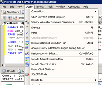 - In SQL Manager, Turn on the following statistics from the "Query" menu (as shown in Figure 1):
