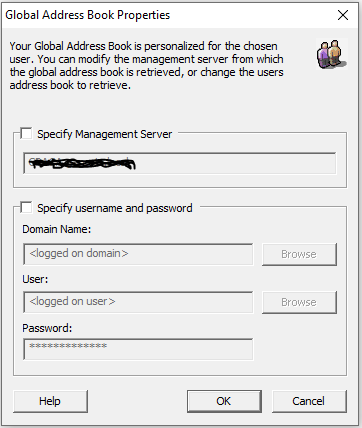 You need to use the DSM Explorer to configure the Global Address Book on the management server."