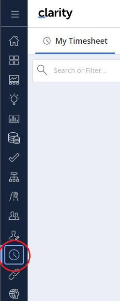 When logging into the Clarity Modern UX, the Timesheets icon is not displayed. Timesheets are displayed in Classic UI, but no one can access to the Timesheets from MUX
