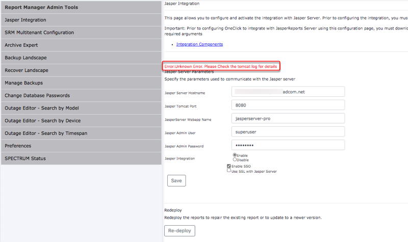 When trying to integrate OneClick SRM with Jaspersoft the following error is seen