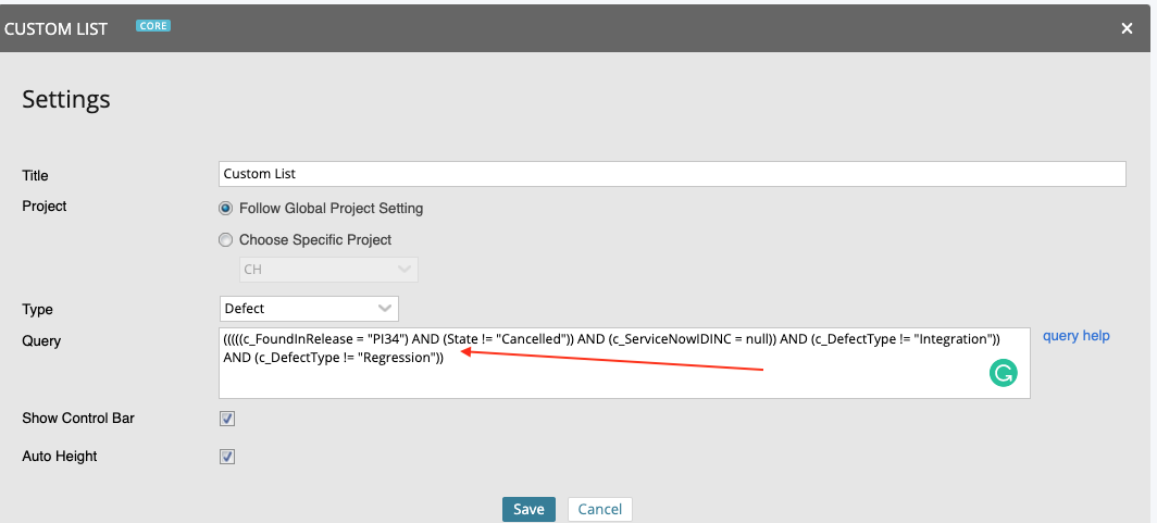 (((((c_FoundInRelease = "PI34") AND (State != "Cancelled")) AND (c_ServiceNowIDINC = null)) AND (c_DefectType != "Integration")) AND (c_DefectType != "Regression"))