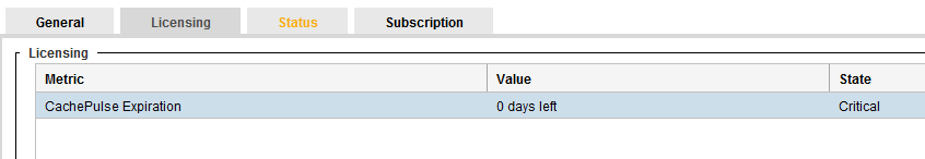 The ProxySG or ASG appliance is showing the health check for CachePulse license in Critical state and already expired even though the license is still valid based on the Entitlement portal.
