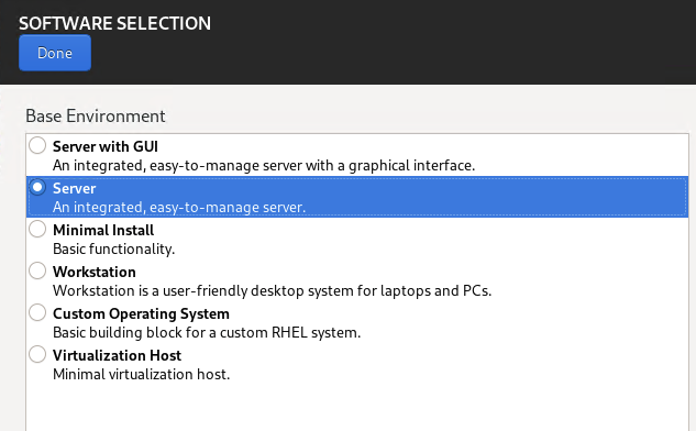 When install RHEL and choosing the Server template in the Software Selection>Base Environment: