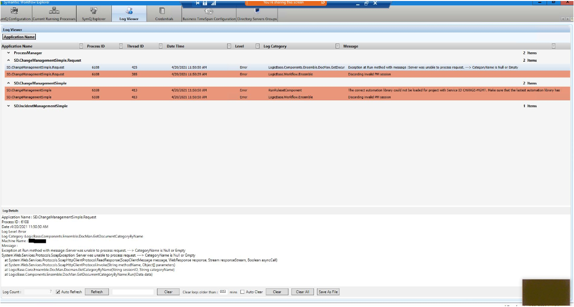 Exception to run method with message: Server was unable to process request. CategoryName is Null or Empty.