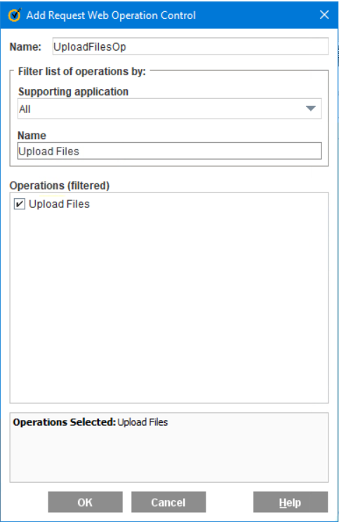 4. On the Combined Destination Object, name the object accordingly, then click on New > Application Operation > Search for 'Upload Files', select it, and then click OK.