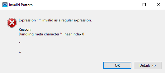 Expression "*" invalid as a regular expression.