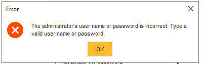 2021-04-20 15:02:29.185 THREAD 78 SEVERE: The administrator's user name or password is incorrect. Type a valid user name or password.