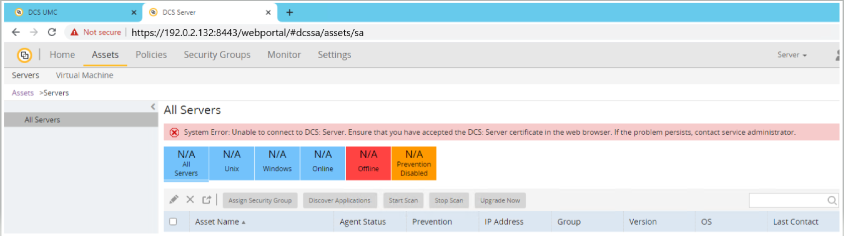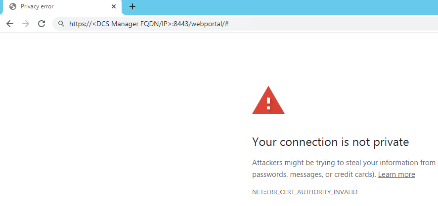 Navigate to the Data Center Security (DCS) Unified Management Console (UMC) webportal. You may notice a notification stating your connection is not private.