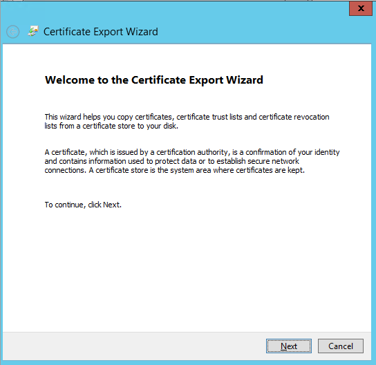 4. In the certificate export window select next.
