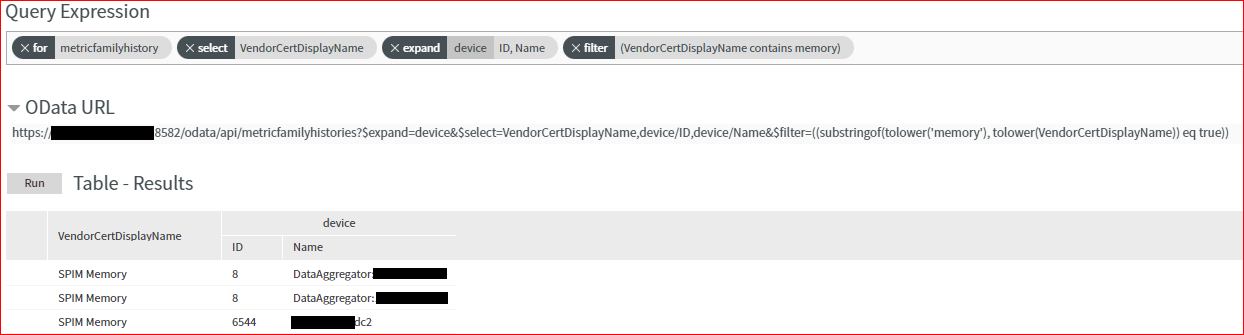 These Data Repository based VSql queries can be used to see all devices that have ever at any time had support for a given VC. Devices can, over time due to a variety of reasons, support 2 or more Vendor Certifications under a given Metric Family. They normally only support one at a time, which is what makes the Odata queries are more accurate showing only what is currently used by the device.