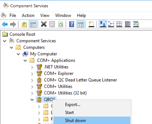 2. Under "Control Panel > Administrator Tools > Component Services" go to the COM+ application and use the right mouse button. First select "Shut down" and then select "Start" i.e.