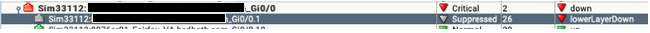 In this case, the Sim33112_Gi0/0 interface was also down. Due to this, fault isolation was run and the Sim33112_Gi0/0.1 was placed into a suppressed state.