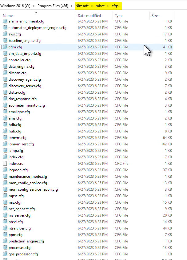 Please note that it may take a few minutes to establish the cfgs folder but the <probe>.cfg files will be stored under \Nimsoft\robot\cfgs\