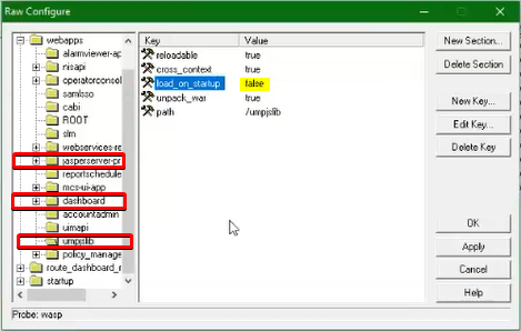 To work around the issue right away, we edited the wasp.cfg and set load_on_startup to false for the webapps listed below: