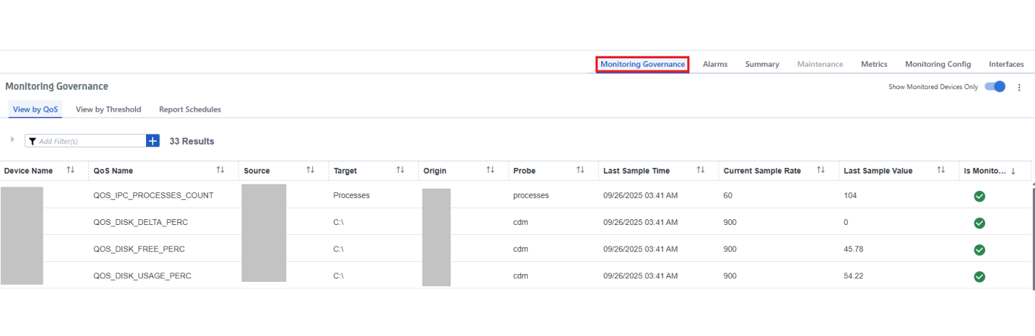 In the OC->Inventory, then select a device or group-> then select Monitoring Governance