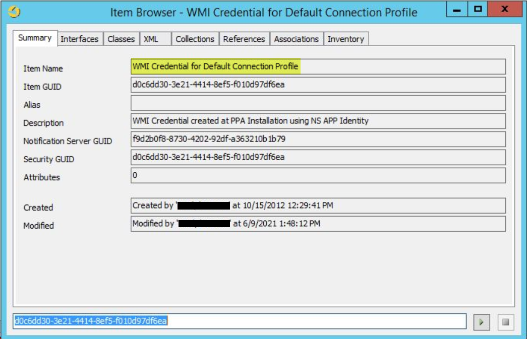 We see that the GUID refers to the "WMI Credential for Default Connection Profile".