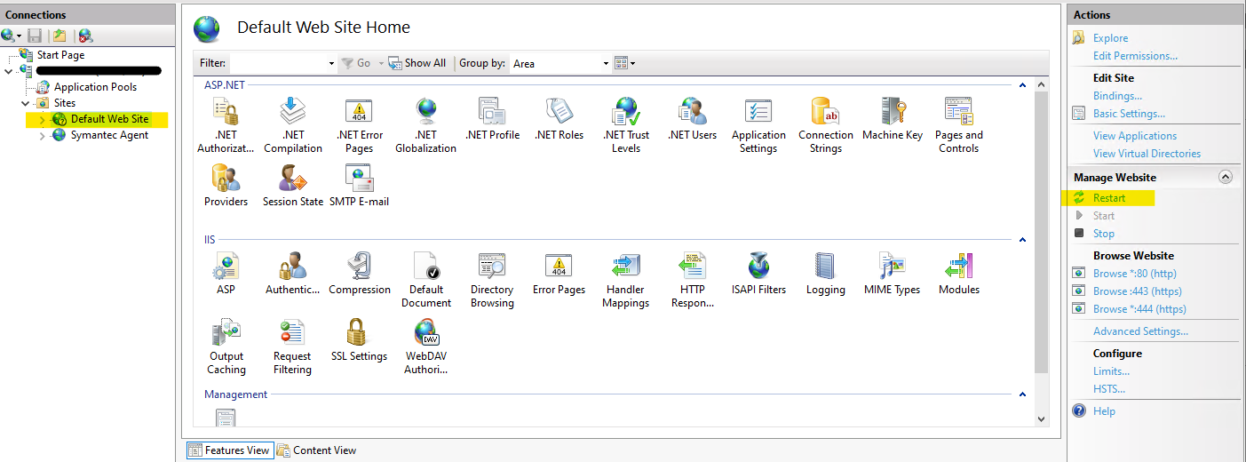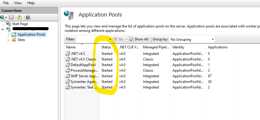 On SMP server, open IIS Manager, check application pools, and make sure all of them are Started: