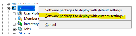 2- Send the procedure "unstage_intellirollup" on the scalability server by choosing "Software packages to deploy with custom settings..."