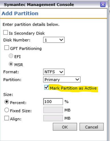 The check box 'Mark Partition as Active' is marked while it should not be as seen below: