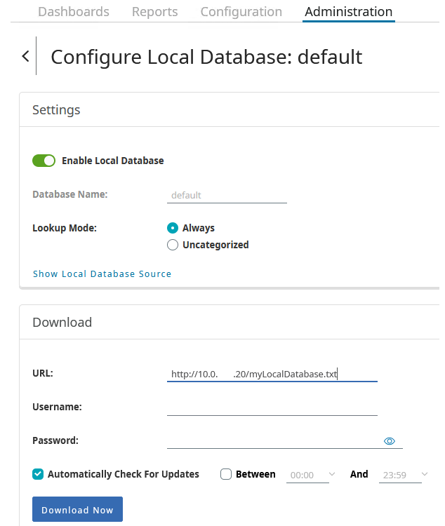 How-to set up a customised list of content filtering URLs categories hosted in a local database