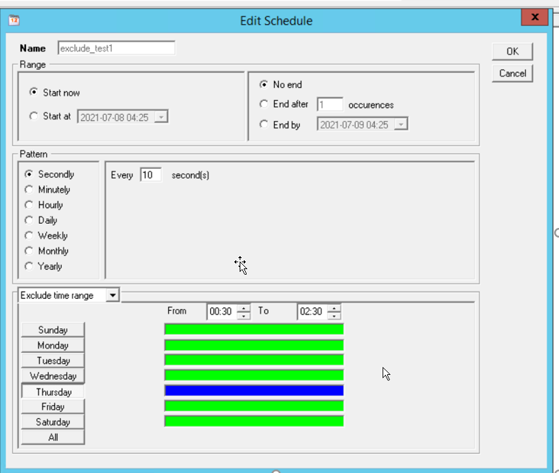 Below is an example of recurring schedule for excluding processes profile from working between 00.30 AM to 2.30 AM
