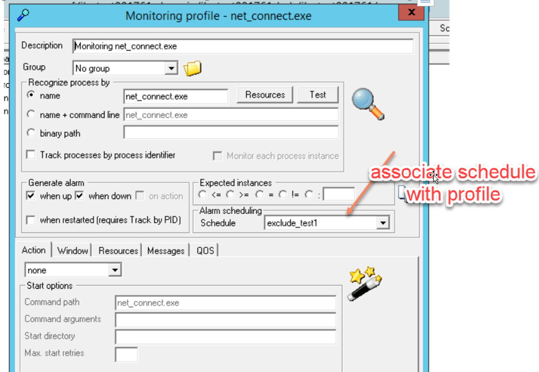 Need to create a schedule for process monitoring to exclude the monitoring of the process only during the particular time re occurring maintenance window every Thursday between 12:30 Am to 2:30 AM.