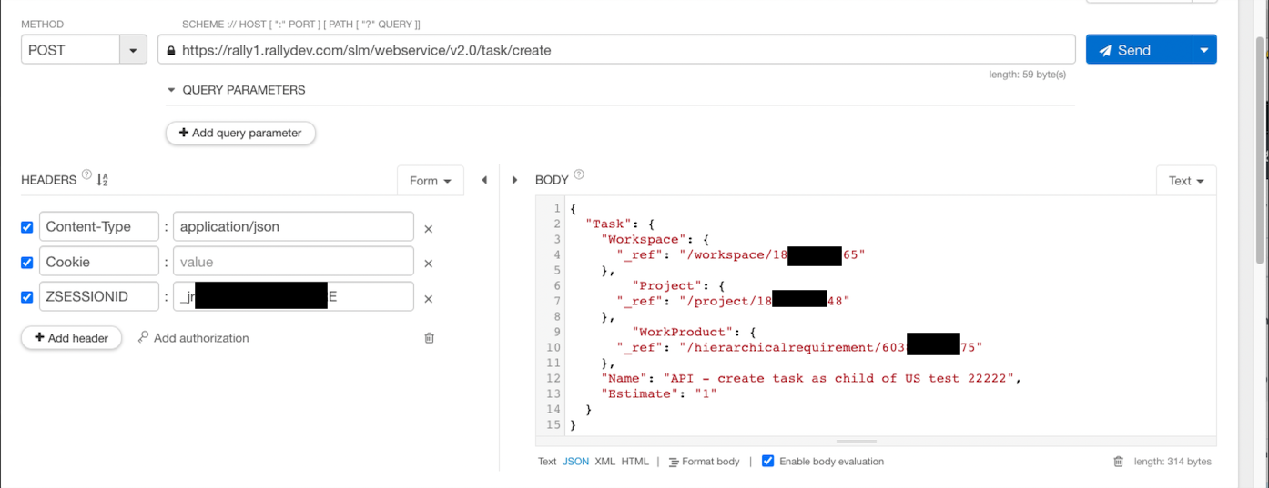API - How to create a Task using the API - with User Story as WorkProduct / Parent