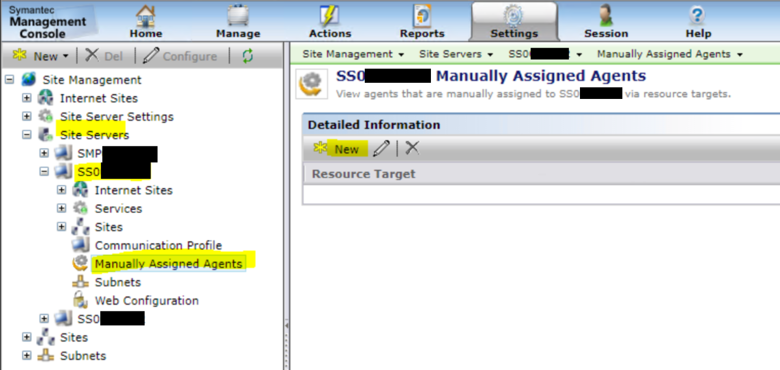 On Manually Assigned Agents click the New button and select the resource target that contains Network Resources to monitor: