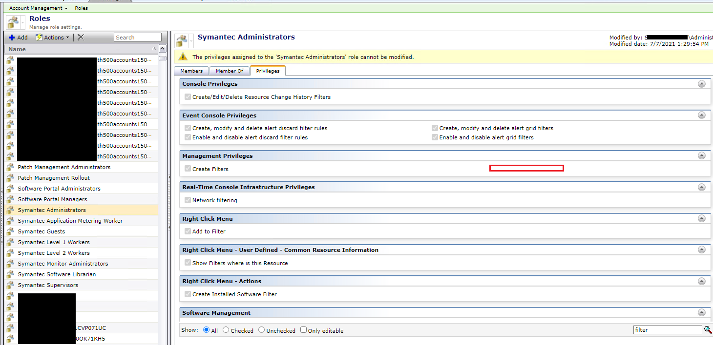 "Use filter builder" privilege is not available after upgrade to ITMS 8.6 RU1
