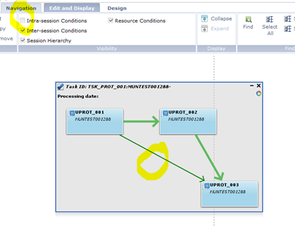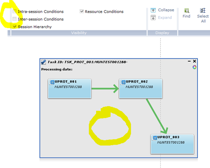 UVC ==> Monitoring ==> Monitoring ==> Job Chains ==> Edit and Display (checkbox for intra and inter-session Conditions).