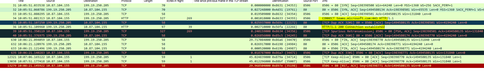PCAPs from firewall showed it got the 200 status response back from Cloud SWG, but never got the expected TLS client_hello message that typically follows the connection establishment.