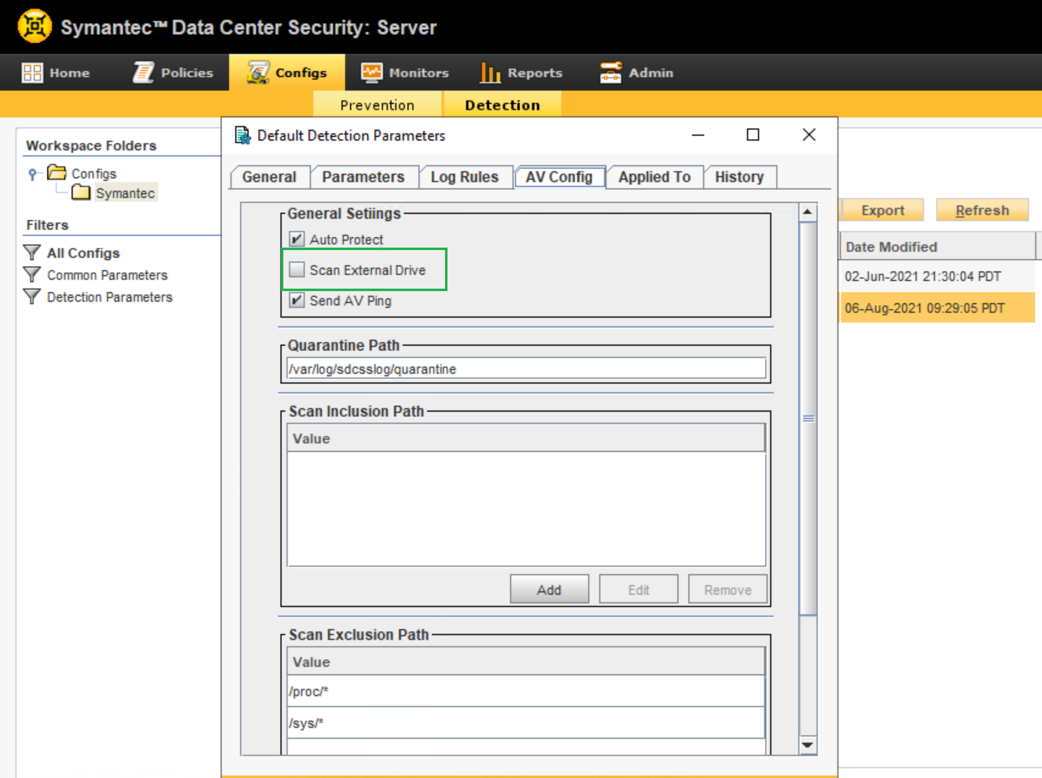 #1 Enable Scan External Drive option in Java Console -->Config-->Detection-->Default Detection Parameters
