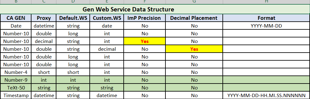 Here is the info on the adapters that are used by the Gen EJB Web Services implementation which match above spreadsheet screenshot: