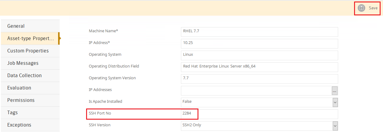 The SSH port used by CCS data collector can be modified via CCS Console under Asset-type Properties of the given asset.