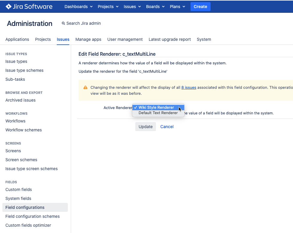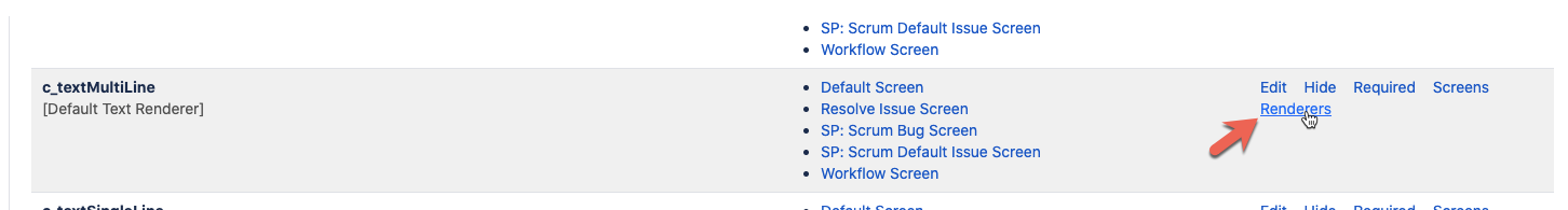 Once in the Field Configuration screen, scroll to the affected field and click Renderers.