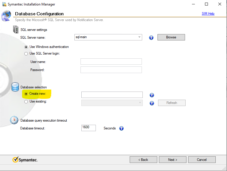 During the configuration steps in SIM (Symantec Installation Manager), it fails with this error:
